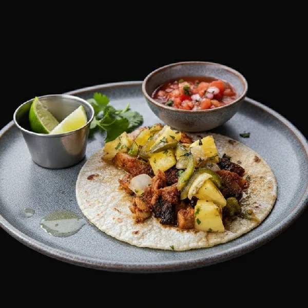 Originating in central Mexico, Taco Al Pastor is inspired by Middle Eastern shawarma, adapted with Mexican spices and ingredients. Pork is marinated in a blend of dried chilies, spices, vinegar, and achiote, then roasted on a spit called a trompo. This unique cooking method creates meat that is juicy, flavorful, and slightly caramelized on the edges.